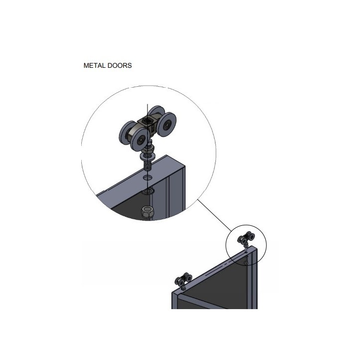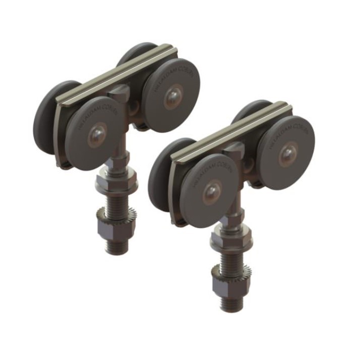 These 4 wheel hangers for metal angle frame doors are designed for Coburn 216 series, and are designed for top hung sliding doors up to 250 kg in weight. They are extremely smooth from use of precision ball bearings and high performance steel wheels. For more details please see the attached diagrams and information.