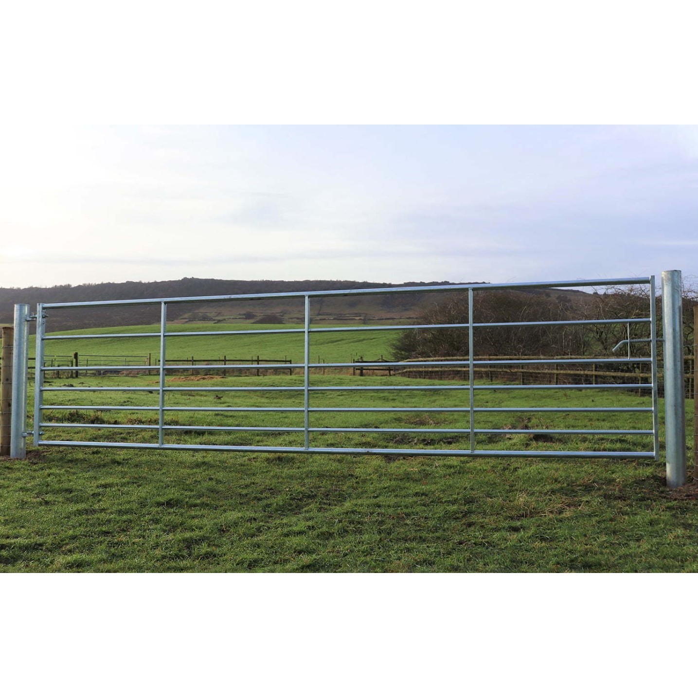 The Ashcombe gate is an economical gate that features seven bars and stands at 1145mm high. It comes complete with box section bracing, welded into the gates, for increased strength and rigidity. It is suitable for general agricultural fencing, including sheep and cattle fencing. It is a lighter gate than our more heavy duty box end gate but still has the strength to stand up to cattle and sheep pressure. This gate comes with a spring loaded latching bolt, two gate eyes and two plastic caps for the top of the stiles.