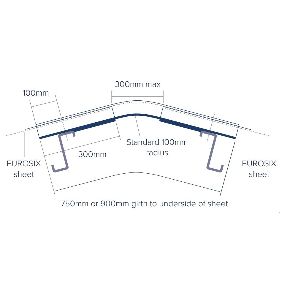 These Cranked Crown Euro Six Vented Fibre Cement Ridges offer a superior roofing solution for robust agricultural and industrial applications. Designed to seamlessly close off Profile 6 fibre cement sheeting, these ridges provide effective ventilation and reliable weatherproofing. Available in versatile girths of 750mm, 900mm, and 1800mm, they can be installed in continuous runs or staggered configurations, delivering precision fit thanks to their exact profile design. Manufactured in pitches of 12.5°, 15°, 17.5°, and 22.5°, they accommodate diverse architectural needs.