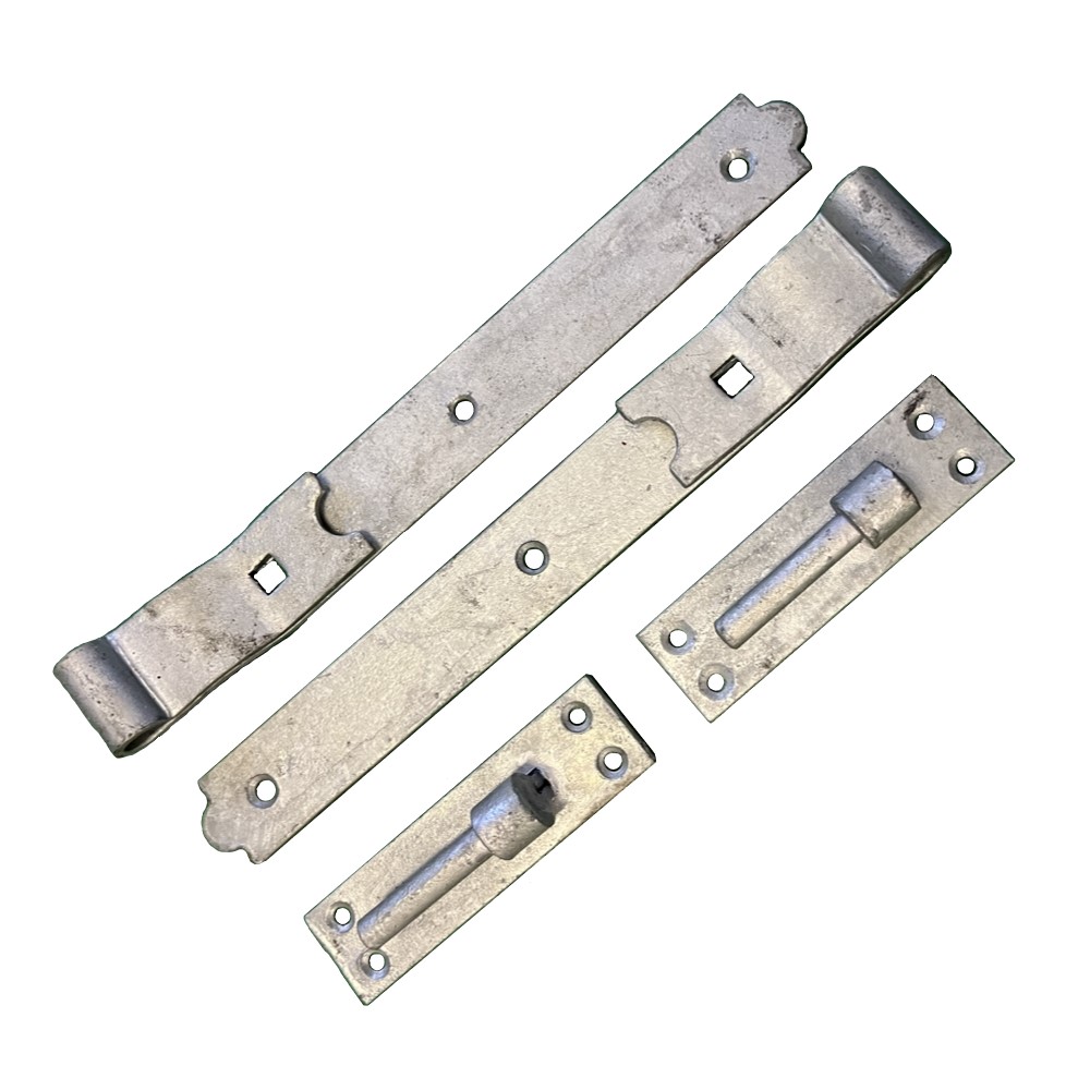 These cranked bands come in a pair and are supplied with hooks for hanging them. They are made from steel which is galvanised for corrosion resistance. They are ideal for applications such as hanging timber gates and timber doors, as they are a strong hinge that can support more weight than our standard tee hinges.