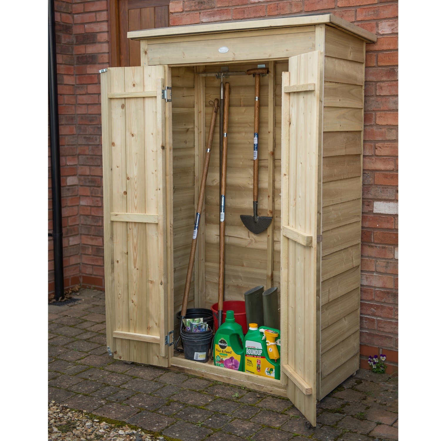Perfect for the storage of long handled gardening tools, folding furniture and outdoor equipment