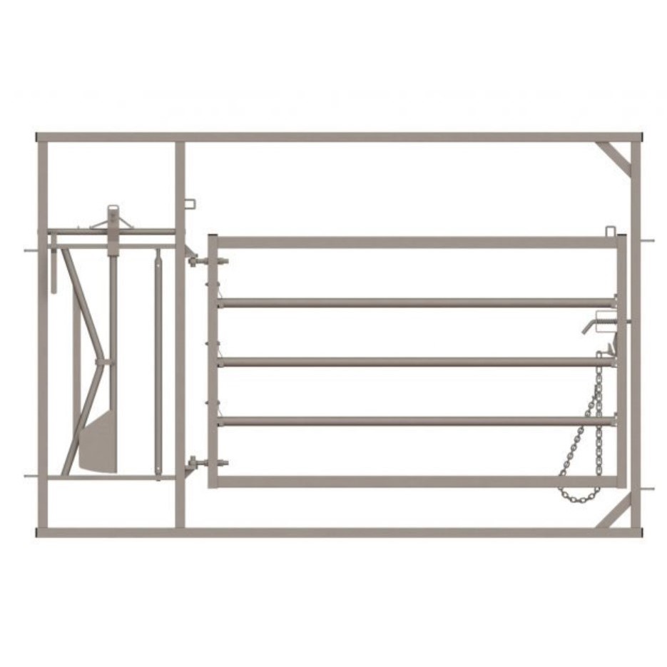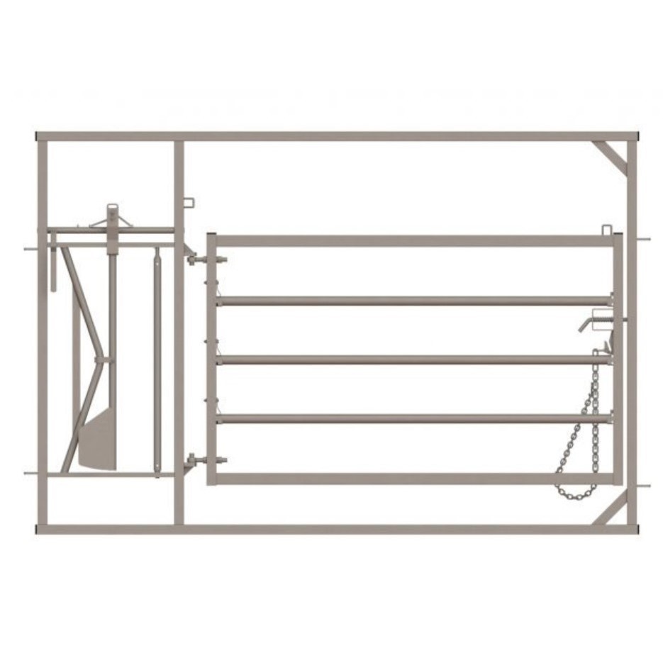 The Deluxe Calving Hurdle is a simple way to assist with calving when the time comes. The hurdle enables the pregnant animal to be isolated and safely restrained so that the birthing process can be carried out in a controlled, calm and safe manner. The Deluxe Calving Hurdle features removable rails inside the gate so that if a Caesarean Section needs to be performed it can easily be carried out. Simply remove the rails or open the gate to provide you with the space you need. The special yoke is positioned differently to that of a standard feeding yoke. Due to a higher risk of animals going to the ground during birth, the yoke is designed to allow for this and will therefore allow the head of the cow to slip down without causing choking. The calving hurdle is set to be one hand only as a Caesarean section can only be performed on one side of the cow.