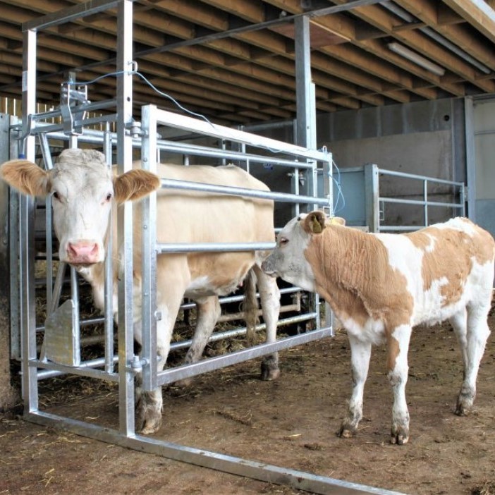 The 3 removable rails either allow for a Caesarean section to be performed or for the calf to suckle from its mother