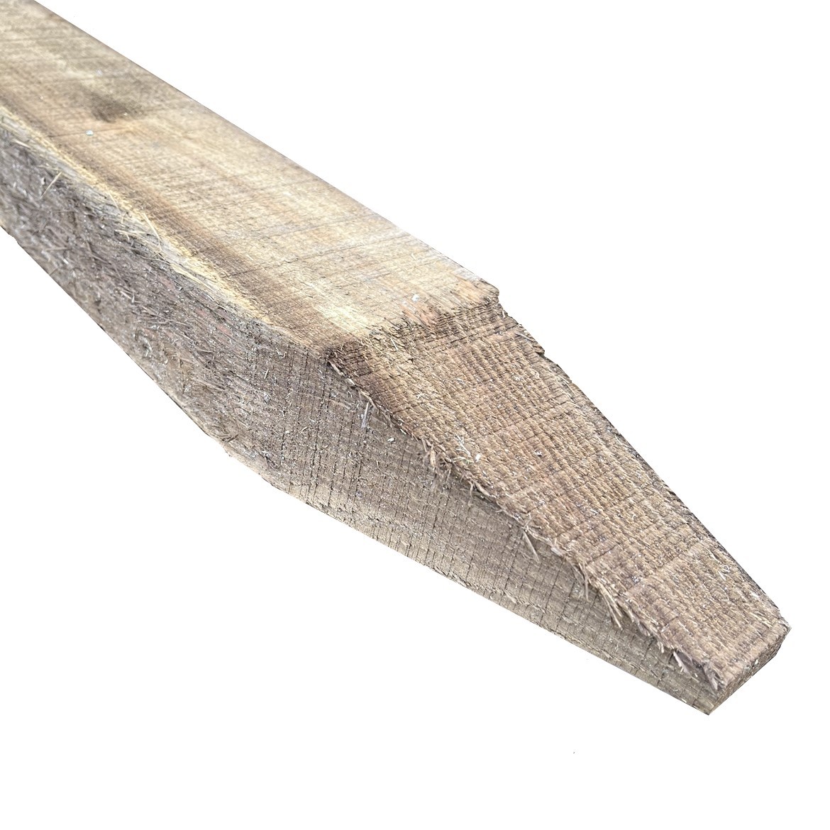 Our 4″ x 3″ square fence stobs/posts are rough sawn from UK home-grown larch for a maximum lifespan of up to 25 years and have been green pressure treated ready for ground contact. Supplied with an 8″ long square sawn point these stakes are ideal for driving in with a postdriver or manually with a mell. Although these posts have a point in some cases they need concreted in for stability where there is wind pressure. Generally we suggest 24″ – 30″ below ground level so posts need to be ordered with this in mind.