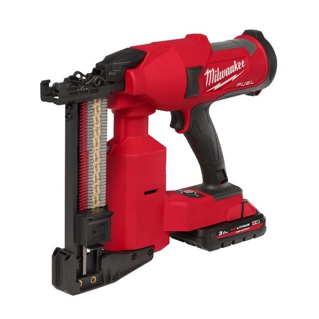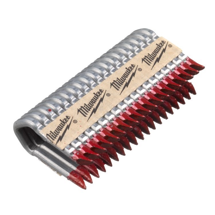 These 45mm fencing staples are made for the Milwaukee M18 FFUS staple gun and are for all types of wire fencing attached to wood. These staples are hot dip galvanised coated for superior long term corrosion resistance and are made from 4mm thick steel wire for longer lifetime in outdoor applications. They have sharp divergent point tips allowing the staple to twist as it is driven in giving better holding power. A red adhesive coating on the tips gives increased driveability while the paper tape allows for more speed when in use.