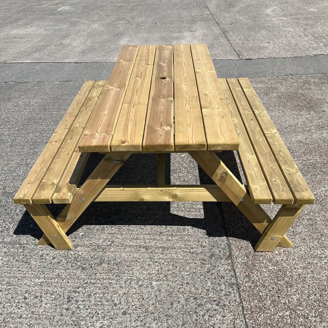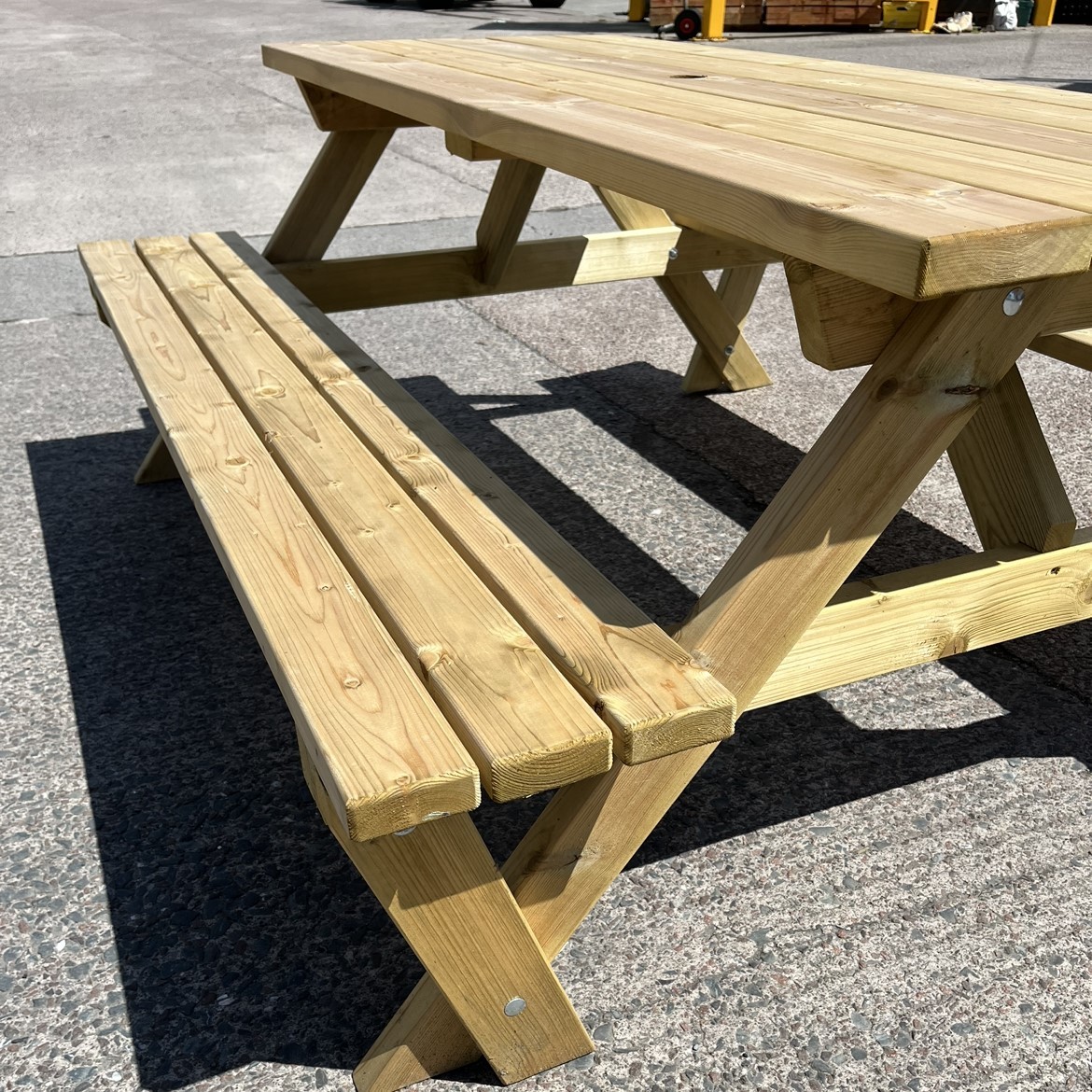 This Picnic bench is ideal for garden settings with a natural look and a solid well presented finish. This bench comfortably seats 4 and can seat up to 6. This product comes flat packed or can be assembled if required. For any enquiries on this product or other garden furniture please contact our sales team at [email protected] or call our office on 01557 330616.