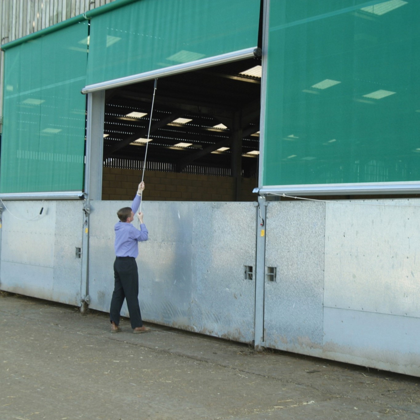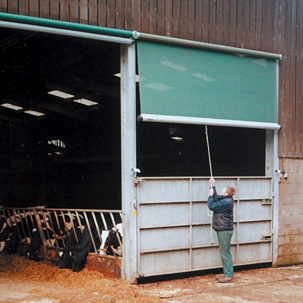 The Galebreaker Rollerscreen system is a spring-operated windbreak allowing for changeable ventilation as well as protection from the weather. Designed to fit above gates, lower walls and feed barriers, the Galebreaker Rollerscreen provides fast access to sheds and feed passages and is fully adjustable to fit any opening. Coming in a standard colour of green and designed and delivered in kit for maximum ease of installation on site, this rollerscreen is available in M75 Standard Mesh or M90 High Performance Mesh. M75 standard mesh has a permeability of approximately 25% and the M90 high performance mesh has a permeability of approximately 10%, making the M90 more suitable for exposed locations. Black and grey fabric are also available at the same price, and if either of these colours is required, or if more information is required, please leave a comment on your order or contact our office on 01557 330616.