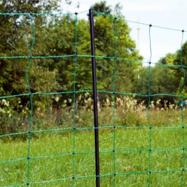 This Rutland Ovinet sheep netting comes in two heights of 90cm and 108cm and with both nets having a double prong on the bottom for going into the ground. All nets are 50m in length and have sturdy plastic posts with a galvanised bottom tip. The netting consists of strengthened, energised upper poly wire, with increased conductivity thanks to the use of 5 stainless steel wires and a tin-plated copper wire. The head insulator and ground topper make self loosening of the poly wire virtually impossible, and extremely stable welded knots ensure the netting stays together. Very useful netting for strip grazing or creating small pens, and can be used with several nets in a row.