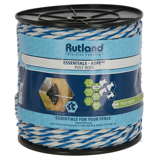 This poly rope essential is designed for shorter fence lines and strip-grazing areas. It has a length of 200m and a break load of 400kg, with a thickness of 6mm.