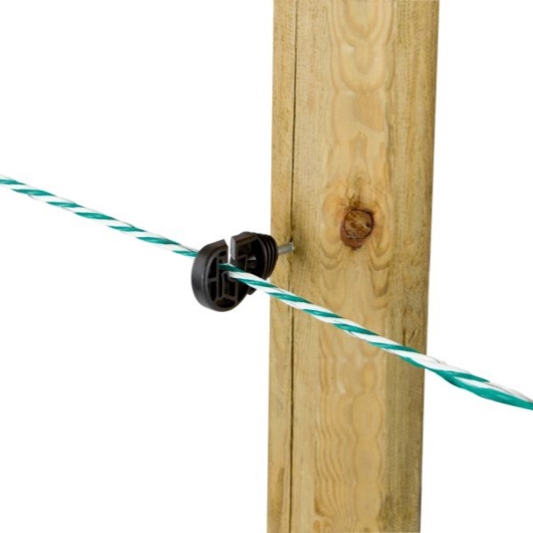 This insulator combines various uses of conductor materials in one insulator. It gives excellent insulation characteristics due to large, wide drip-zones emphasising the high quality of this insulator. Made of plastic with a short galvanised support with wood thread. This product is suitable for poly wire, rope and tape up to 20 mm. Comes with 20 pieces in the pack.