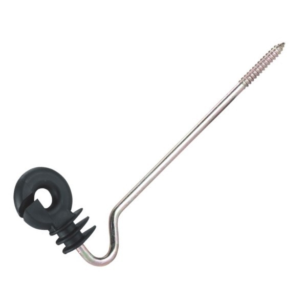 This insulator is suitable as a spacer, and is made of plastic with a galvanised support 6mm thick. It comes with a wood thread and the offset is 22cm. It is suitable for poly wire, rope and tape up to 10 mm. It comes with 10 pieces in the pack.