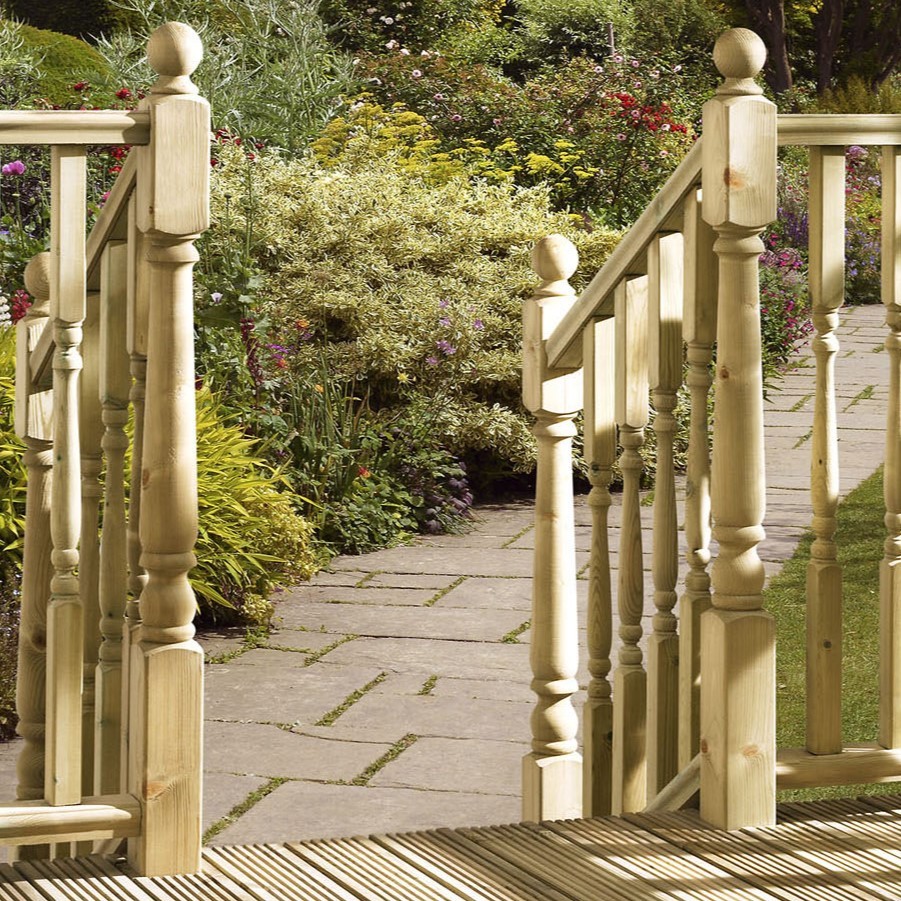 These Scandinavian and Baltic FSF/PEFC treated redwood turned decking newel posts are fitted between 2.4m handrails providing strength and stability. Used along with the spindles and the decking handrails they create a decorative surrounding fence to your decked area. Our decking range is long lasting due to the treatment process which provides excellent resistance against the elements, fungal decay and insect attack.