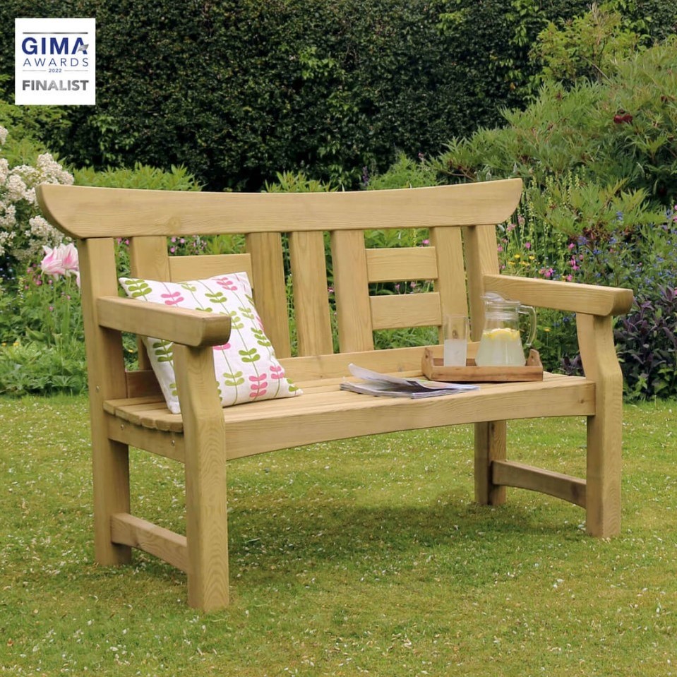 This wooden garden bench is inspired by Japanese architecture and beautifully crafted to bring an oriental feel to the garden. This new Cherry Blossom bench is both functional and elegant, and the innovative bench incorporates square back panel supports making it both a feature and a unique looking wooden bench. It is simple to build, and the oriental style is also reflected in the top bar, with elegant upward curves, designed to match the Cherry Blossom wooden garden arch.