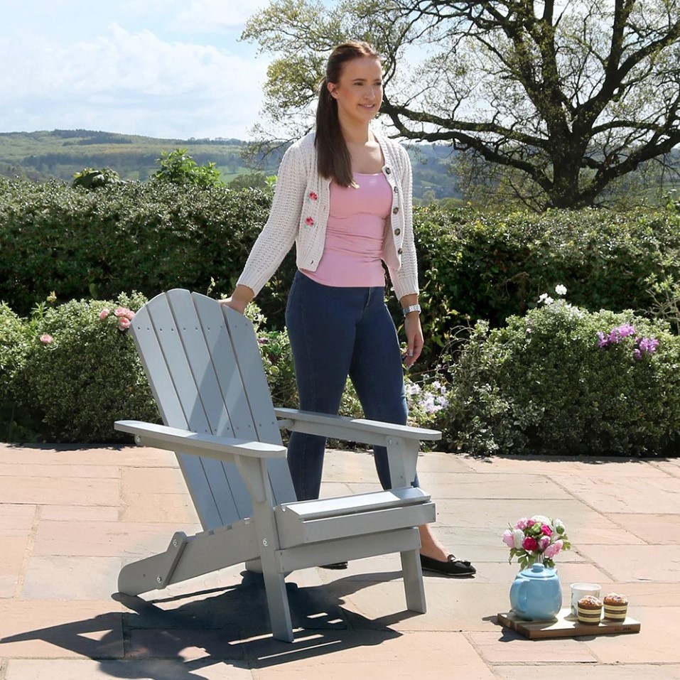 This stylish painted jasmine folding chair is a design classic. It is elegant and inspired by the simple contours of the popular Adirondack style, and is made from rich, durable and sustainable acacia wood. Very comfortable with a sloped seat, angled back, and wide arms rests, it is perfect for relaxing and enjoying any outdoor space. Acacia wood is naturally water resistant with natural durablity, making this chair very practical. When not being used this garden chair simply folds away, making it easy to store. To make it even more durable it is painted with polyurethane, which is far tougher than paint and more resistant to knocks and scraps. Polyurethane is also resistant to water and most chemicals. Also available in dark grey.